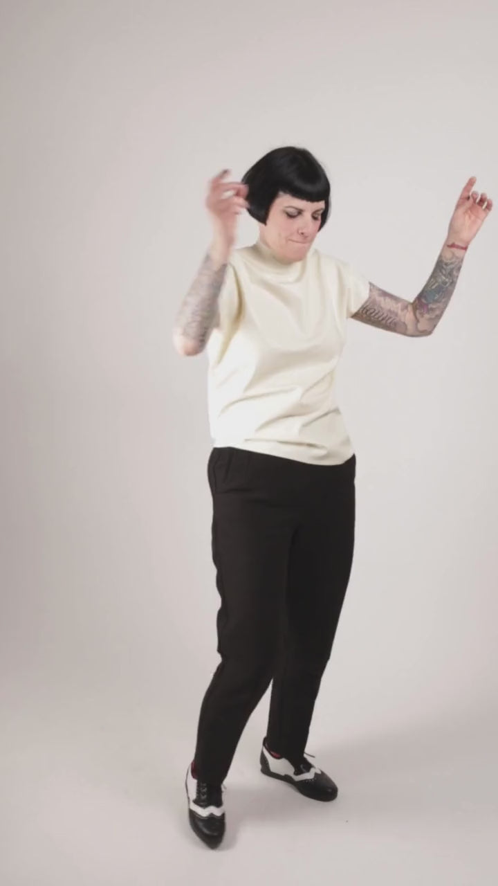 Im Stil eines ärmellosen Tops aus den 60er Jahren. Trag es wie auf den Fotos mit Flatfront-Hosen, Marlenehosen, einem Demirock oder 3/4-Caprihosen. Auch sehr raffiniert unter einer Strickjacke.