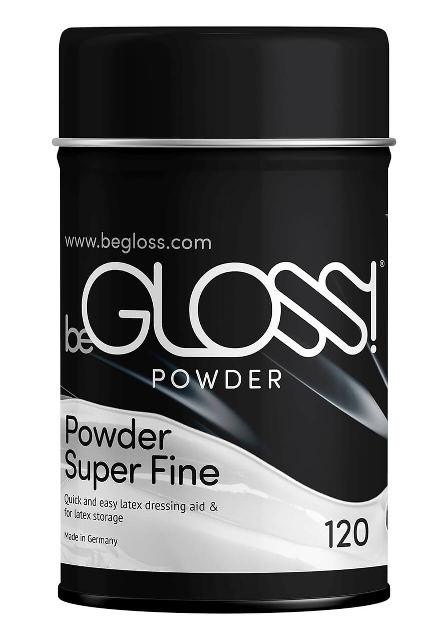 beGLOSS Talkum Puder, speziell für Latex entwickelt.
