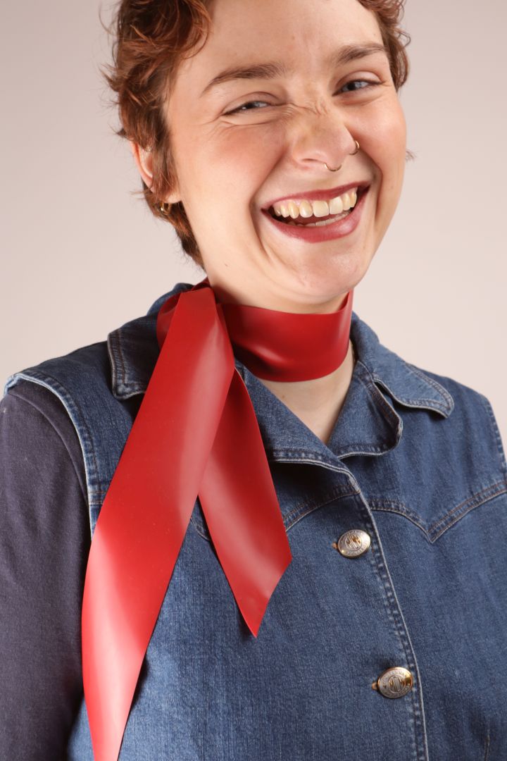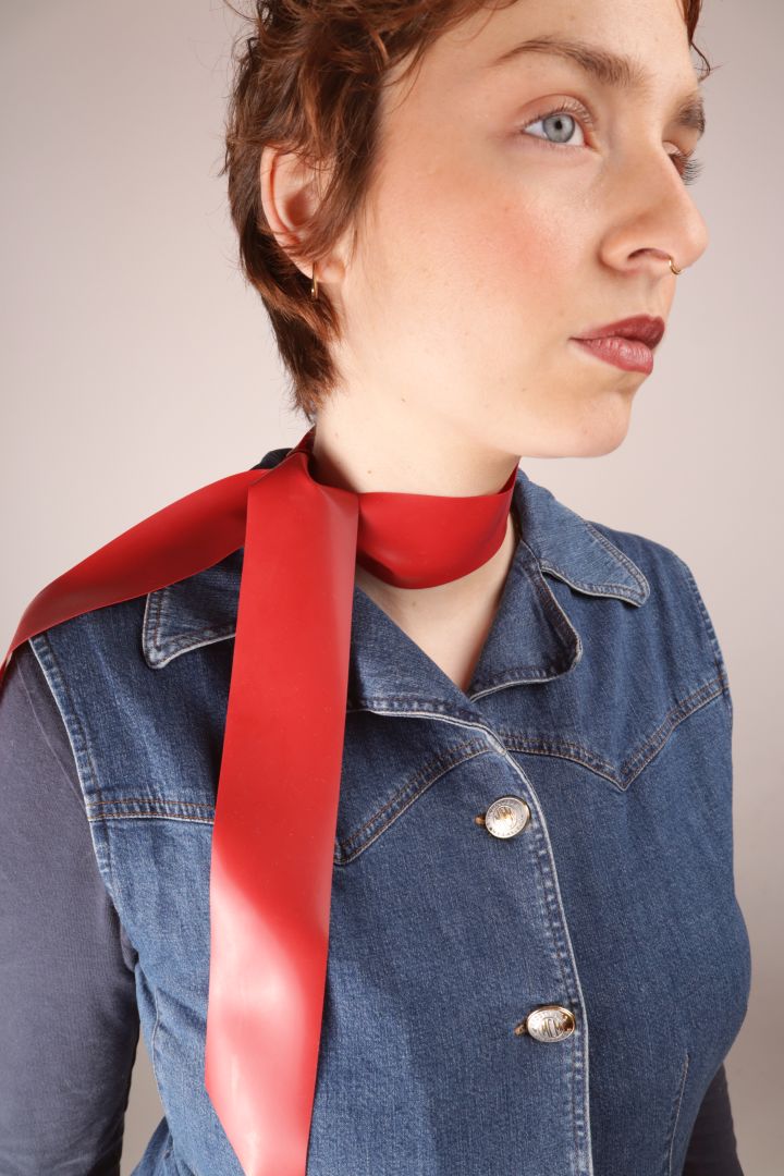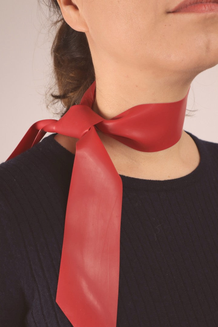 Ein 95cm langer und 5cm breiter Streifen aus Latex ergibt ein elegantes Halstuch.