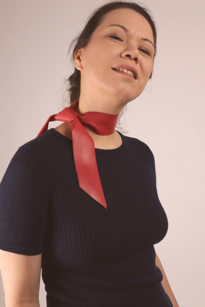 Die Herausforderung, die mich dabei kitzelt, ist, das bis jetzt eher aus der Fetisch-Szene bekannte Material hin zu alltagsfähigen, nachhaltigen Key-Pieces zu entwickeln.